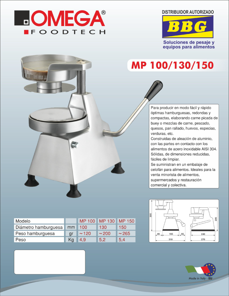 - Hamburguesas de 130mm de diámetro, Hamburguesas de peso menor a 200gr